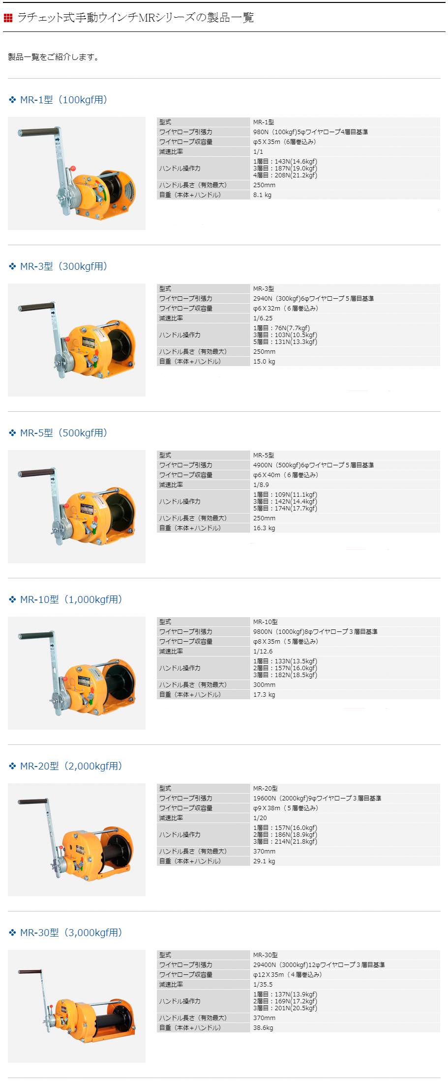 MAXPULL手動絞盤MR-30型(3,000kgf用)