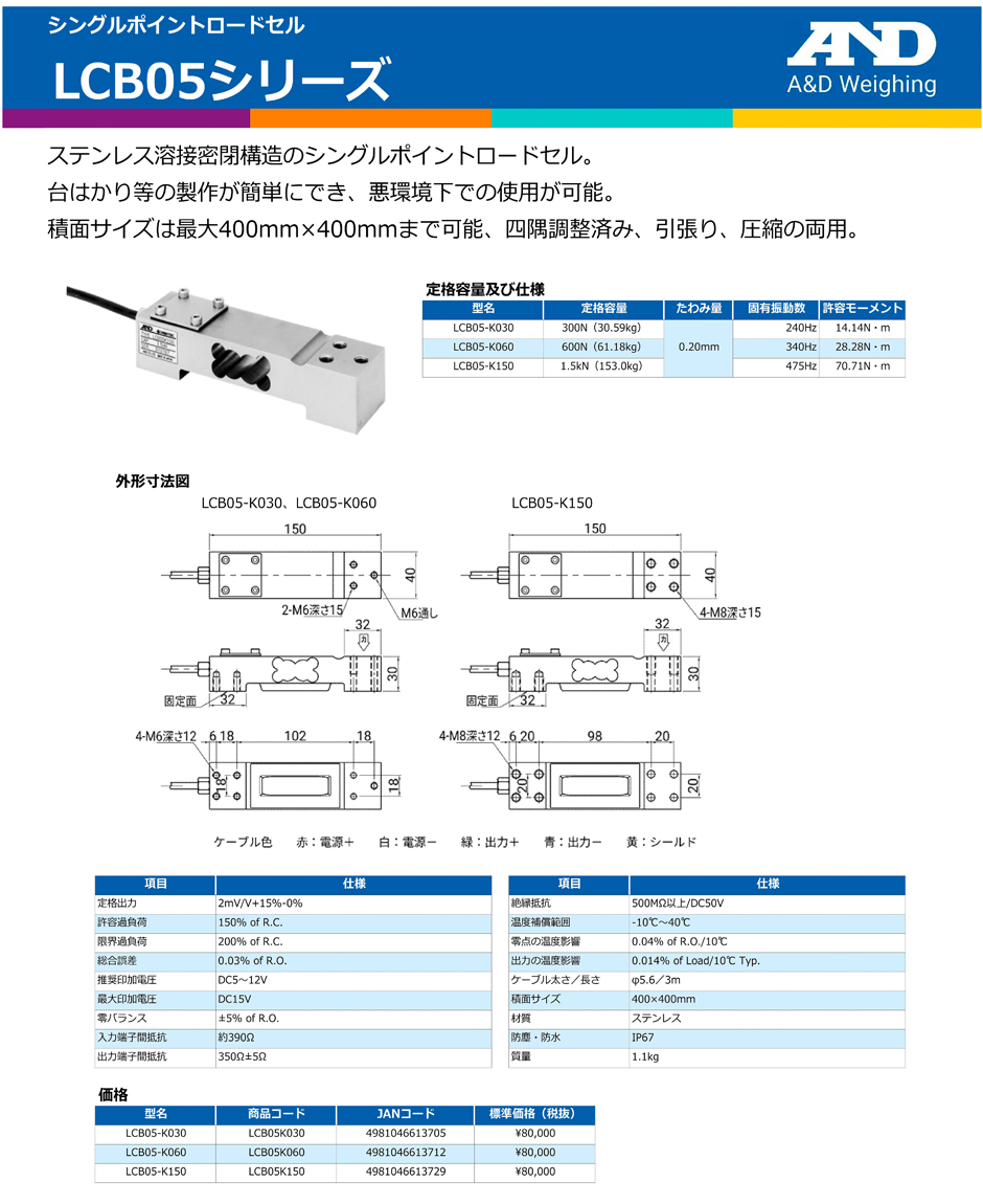AND(A&D)稱重傳感器LCB05-K030
