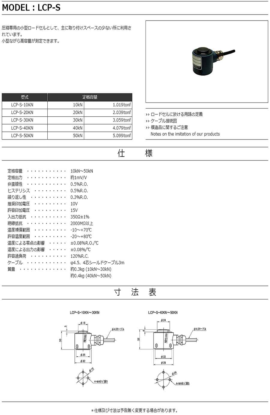 特殊測器荷重傳感器LCP-S-30KN