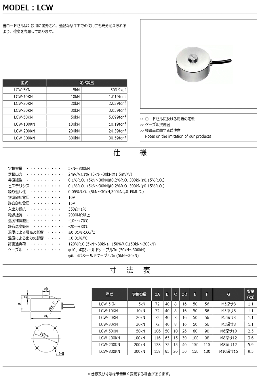 特殊測器荷重傳感器LCW-100KN