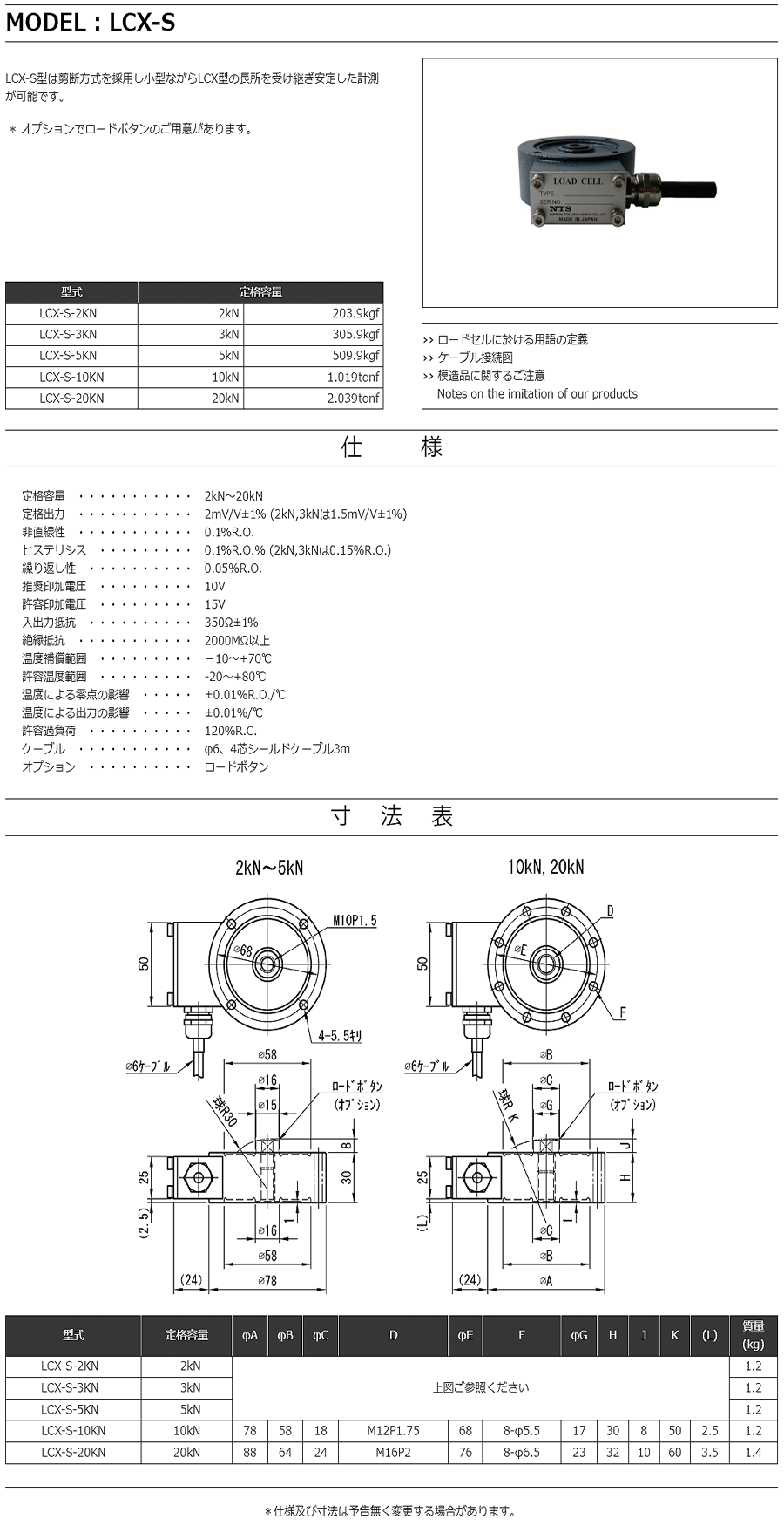 特殊測(cè)器荷重傳感器LCX-S-20KN