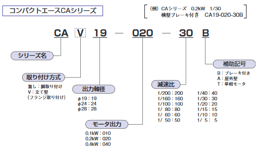 CA24-010-200B      橫型    0.1 三相200/220V 1/200 24 ブレーキ付
