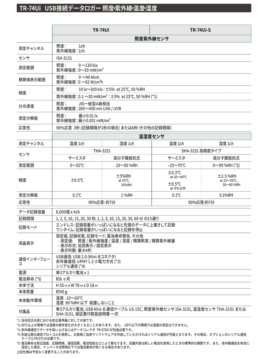 TANDD溫濕度計TR-74Ui-S